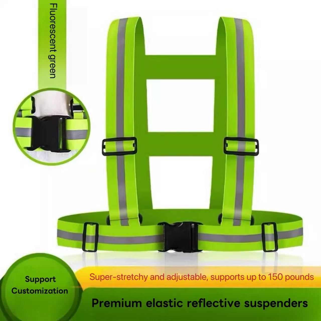 يتميز التصميم بمقاس قابل للتعديل مع أبازيم ومزلقات لتناسب أنواع الجسم المختلفة، ويدعم ما يصل إلى 150 رطلاً. تتوفر خيارات التخصيص، مما يجعلها مثالية لركوب الدراجات، والبناء، والعمل في الهواء الطلق، والسيناريوهات الأخرى التي تتطلب حماية عالية الوضوح.